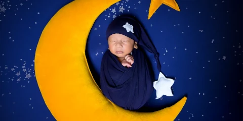 As I was getting ready for the next shot, one of the babies woke up. I seized the opportunity and planned more drama in the snap. I had already arranged for two swaddles, one blue and another yellow. I created the customary moon shot with Rubi and Rose by using a yellow moon crescent against a star-studded dark blue sky. The babies looked cute with the contrasting headbands. However, what made the picture drool-worthy was the expression on their faces. It's so hard to not smile when you see this picture.